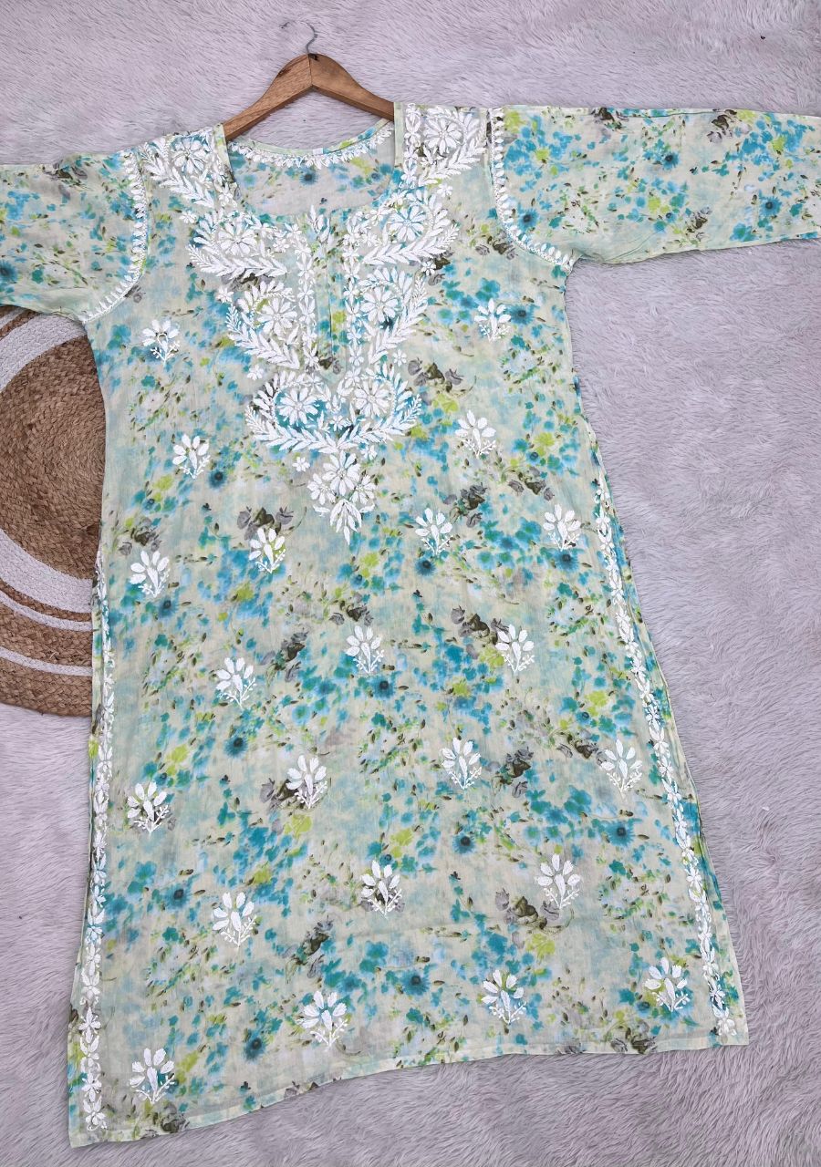 Designed for plus-size comfort and a perfect fit, this long kurta offers all-day ease. Featuring elegant chikankari handwork and a graceful floral print, it’s stylish, flattering, and perfect for office, college, or casual gatherings ✨