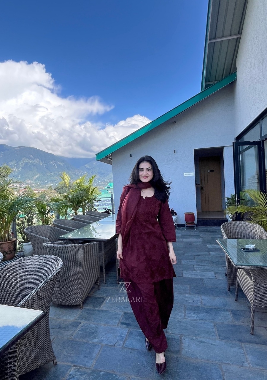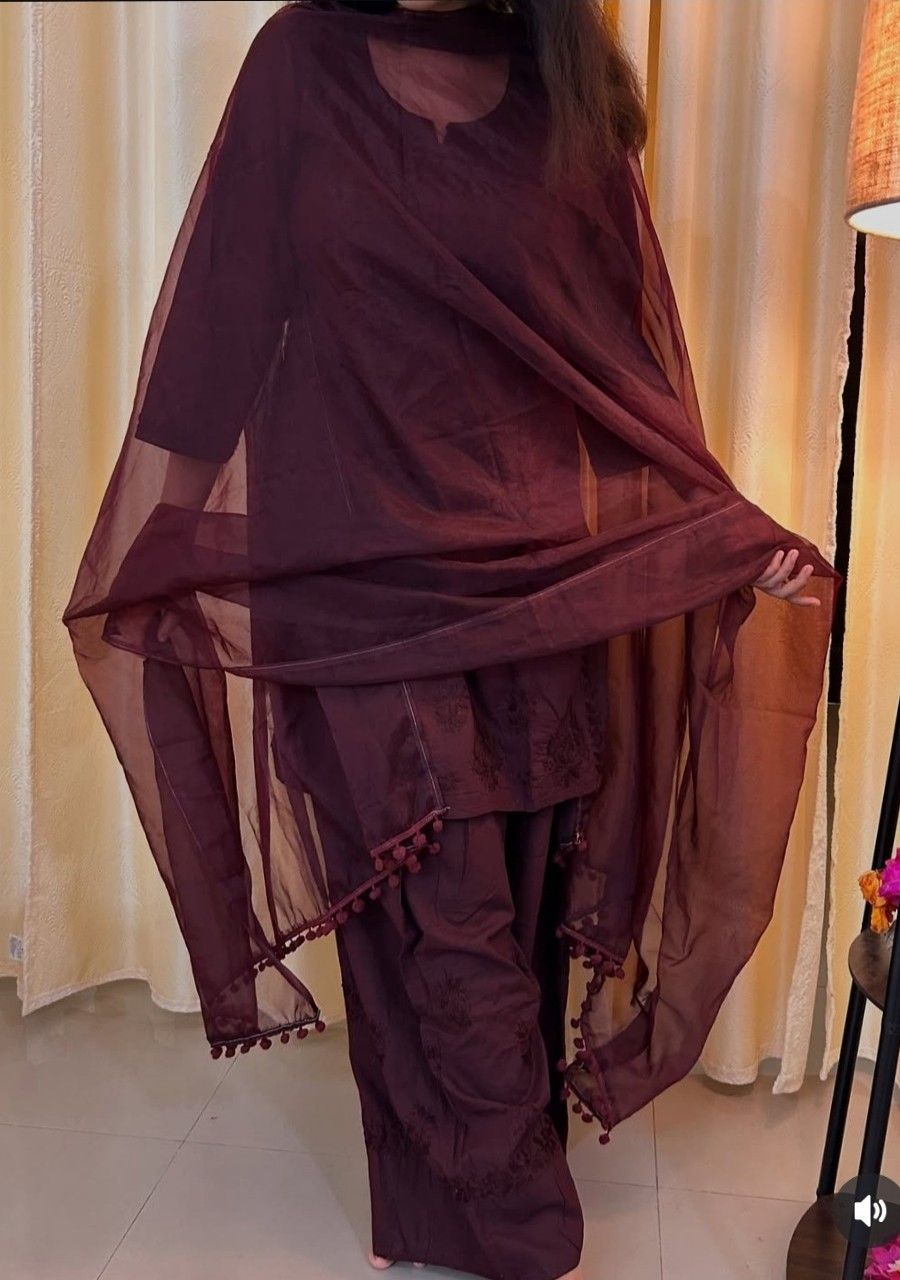 Mehrunnisa Chikankari Farshi Shalwar Suit- Brown
