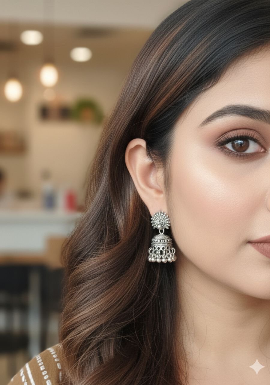 Note: Two earring designs available – Peacock or Flower. Silver Metal Bangles Or Matching Bangles Set. (Please mention your preferred design in the order note.)