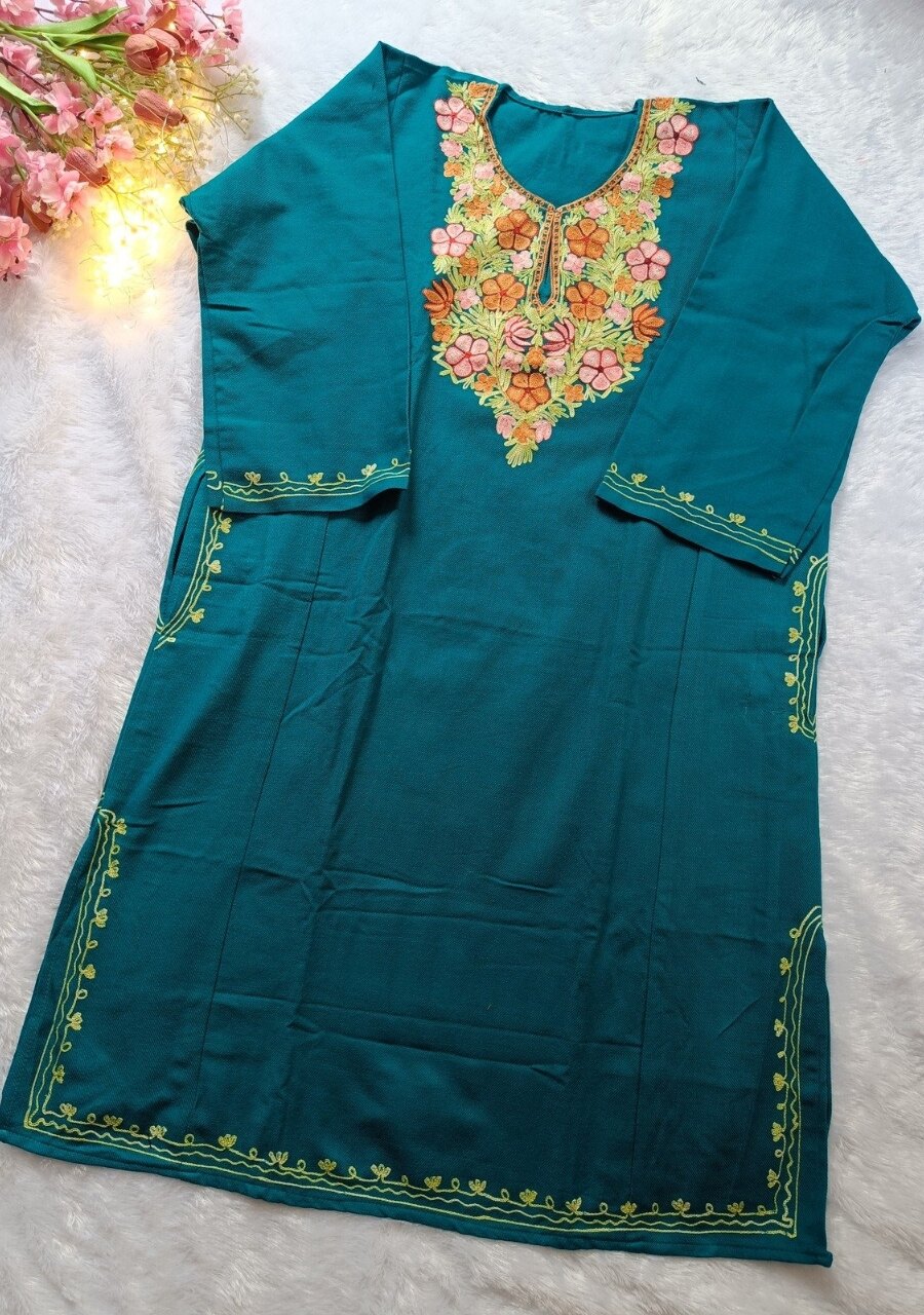 Note: The Pheran is traditionally worn loose to allow layering underneath. Embroidery patterns may vary, as each piece is uniquely handcrafted.