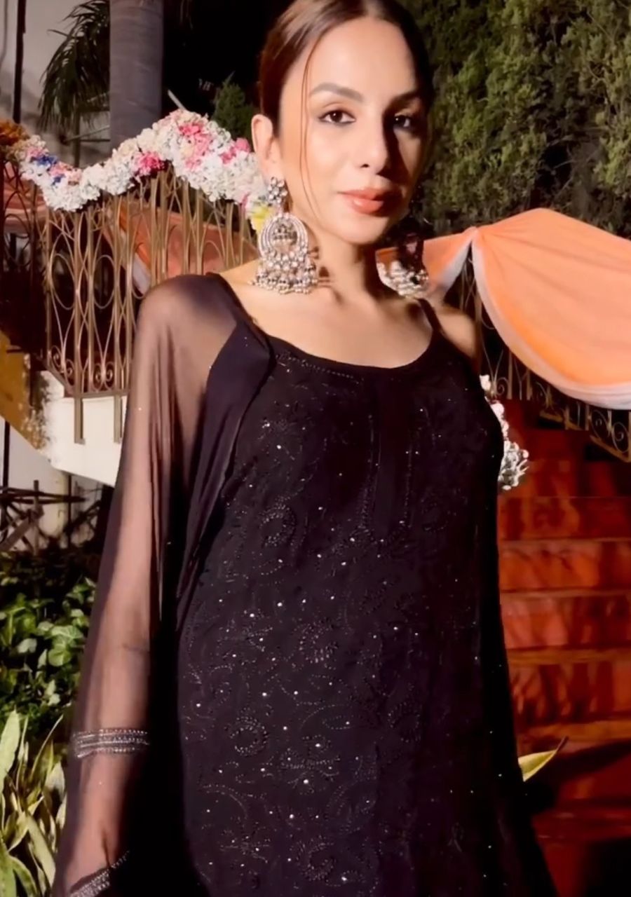 Layla Viscose Chikankari Strappy Short Kurti Gharara Set- Black
