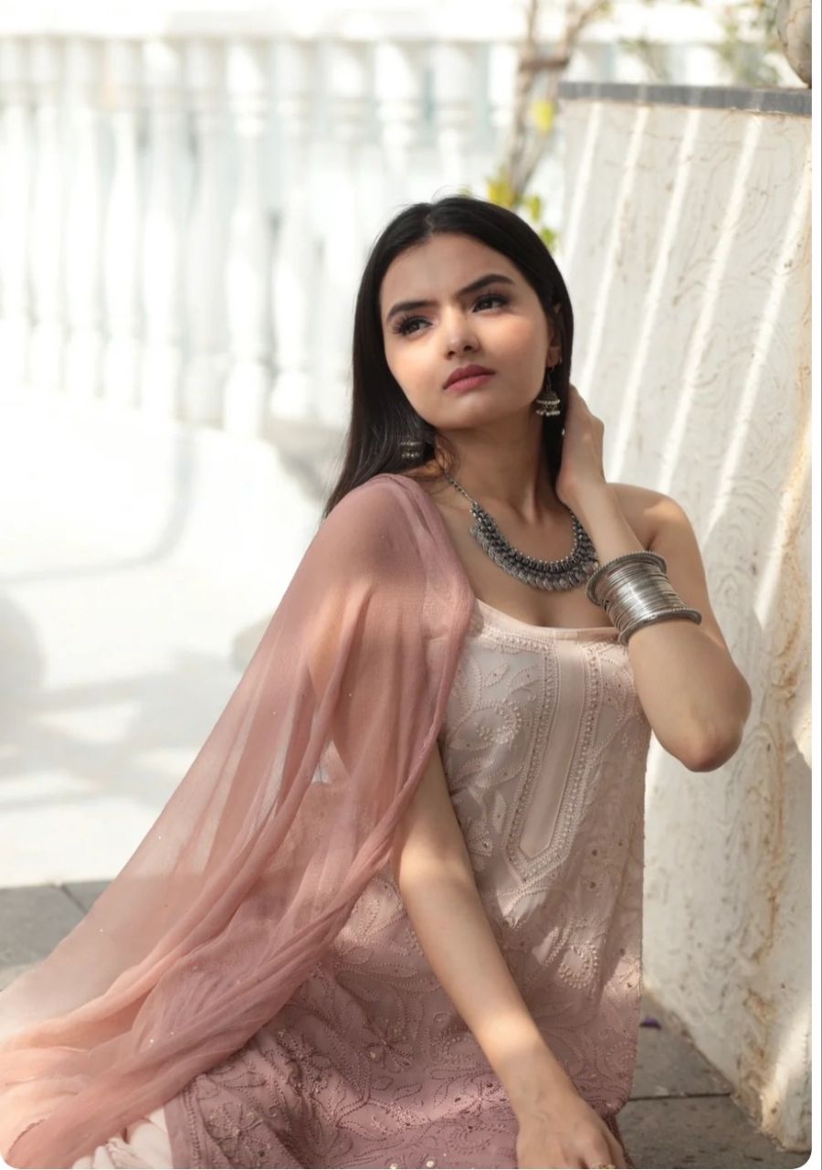 Resham Jaal Chikankari hand embroidery, beautifully enhanced with delicate Mukesh embellishments.