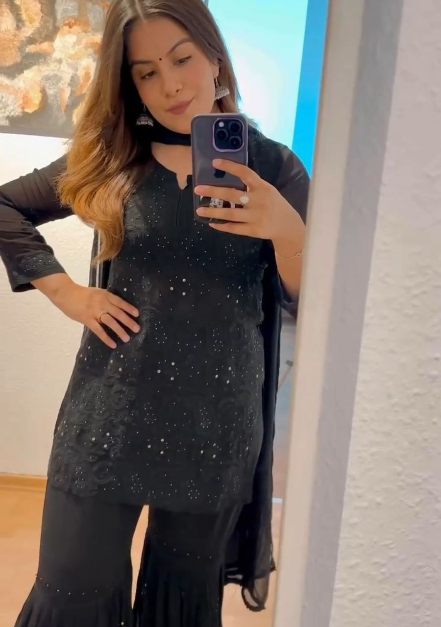 Lubna Viscose Chikankari Short Kurti Gharara Set- Black