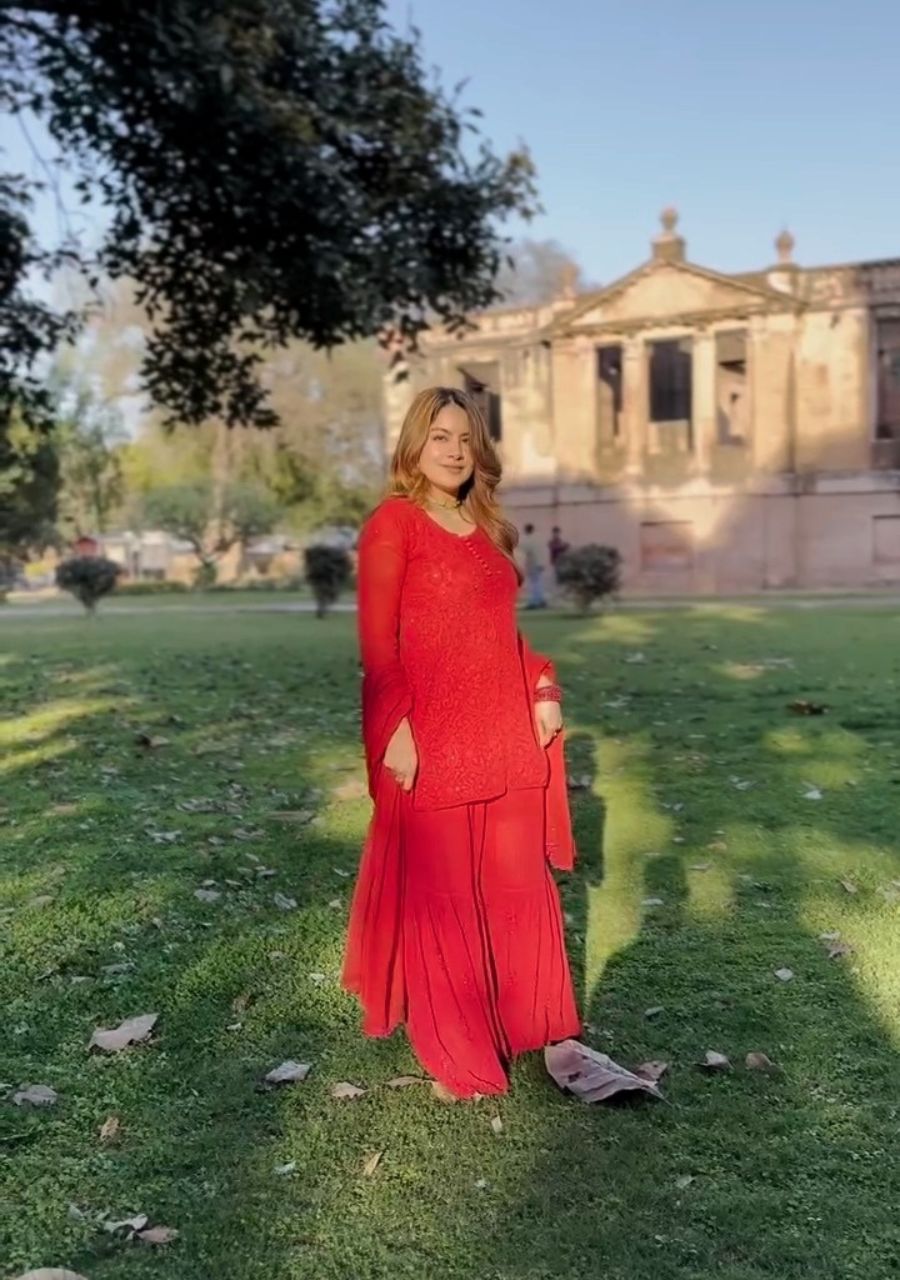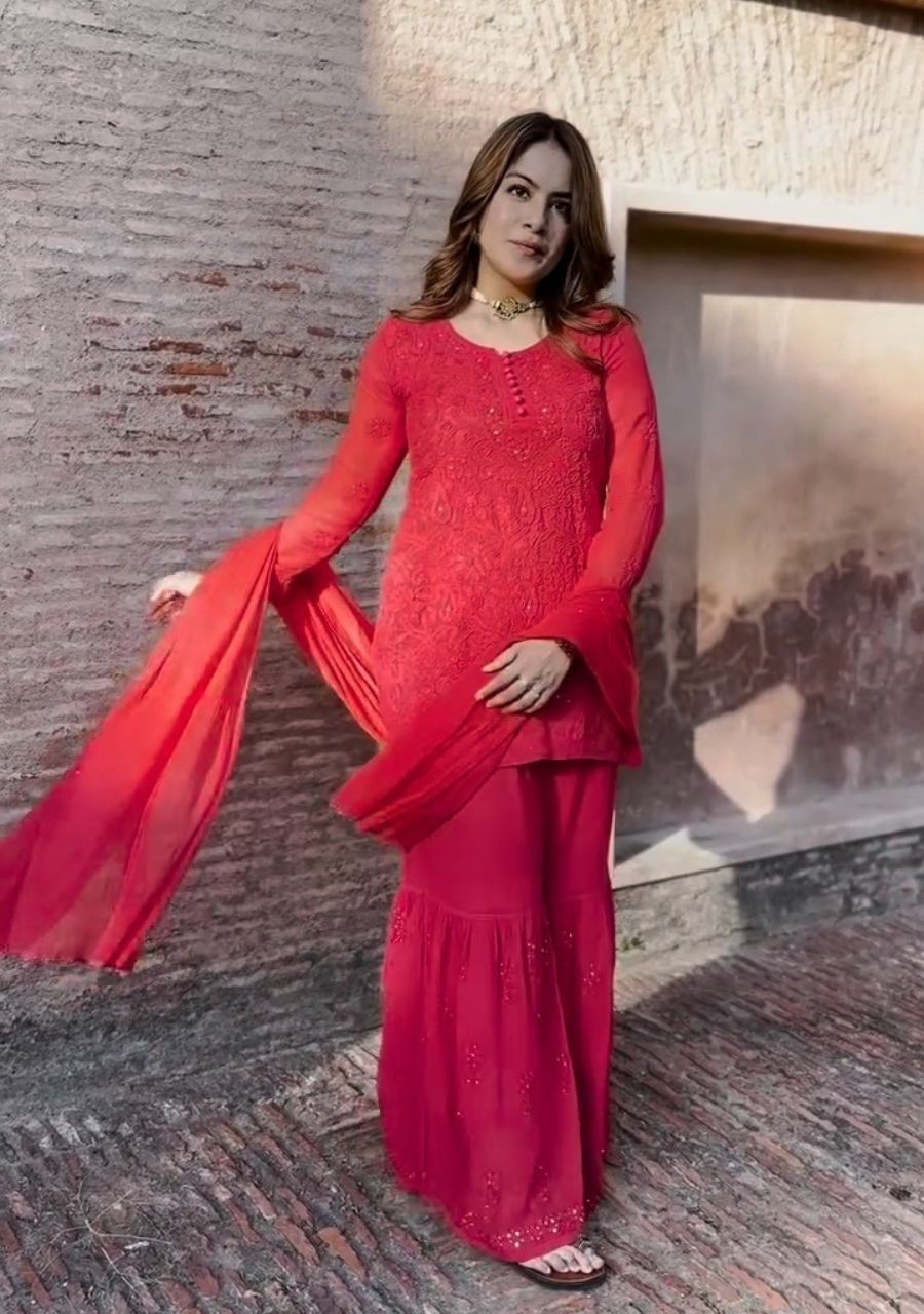Lubna Viscose Chikankari Short Kurti Gharara Set- Red