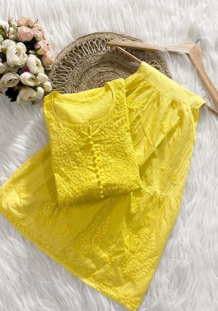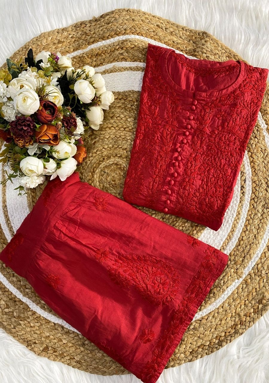 Every detail in this kurti is handcrafted in Lucknow by seasoned artisans, preserving the legacy of centuries-old Chikankari embroidery. Minor variations in embroidery and tone reflect the uniqueness of each handmade piece, making every set one-of-a-kind.
