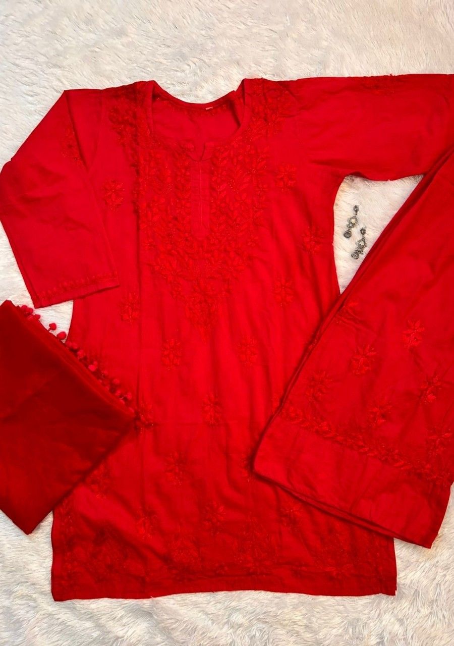 Mehrunnisa Chikankari Farshi Shalwar Suit – Red