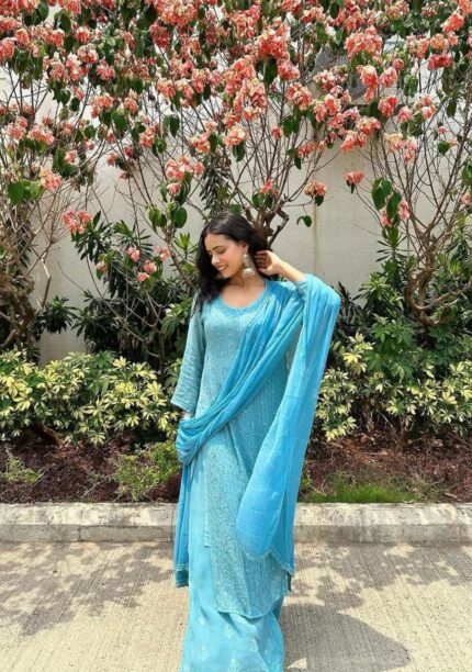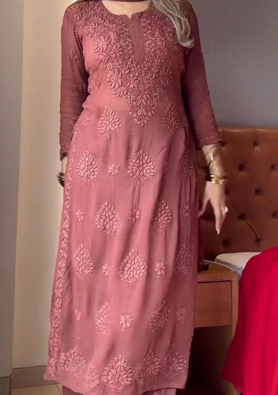 Step into the trending chikankari Kurti , Palazzo & Dupatta Set style with a traditional touch, perfect for festive and wedding season charm, designed for modern girls who love tradition..
