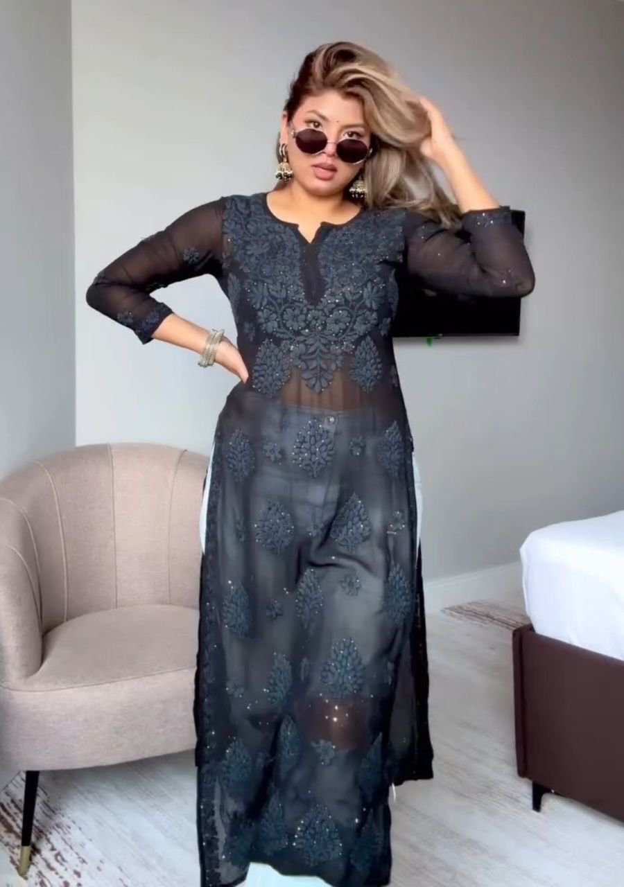 Nikhat Viscose Chikankari & Mukesh Work Long Kurti