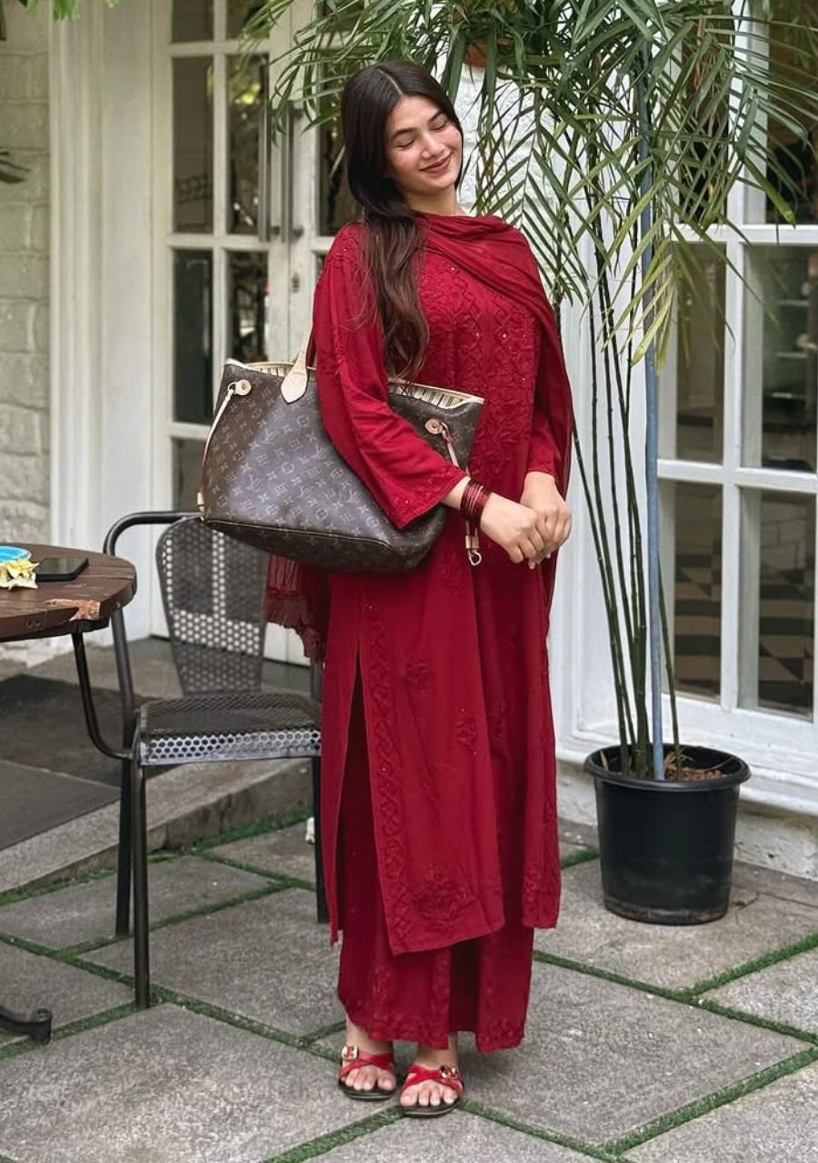 Stylish and elegant, this 3-piece suit features timeless Chikankari hand embroidery with delicate Mukesh embellishments. Designed in a flowing silhouette, it’s perfect for festive formals and effortlessly channels that Desi girl charm.