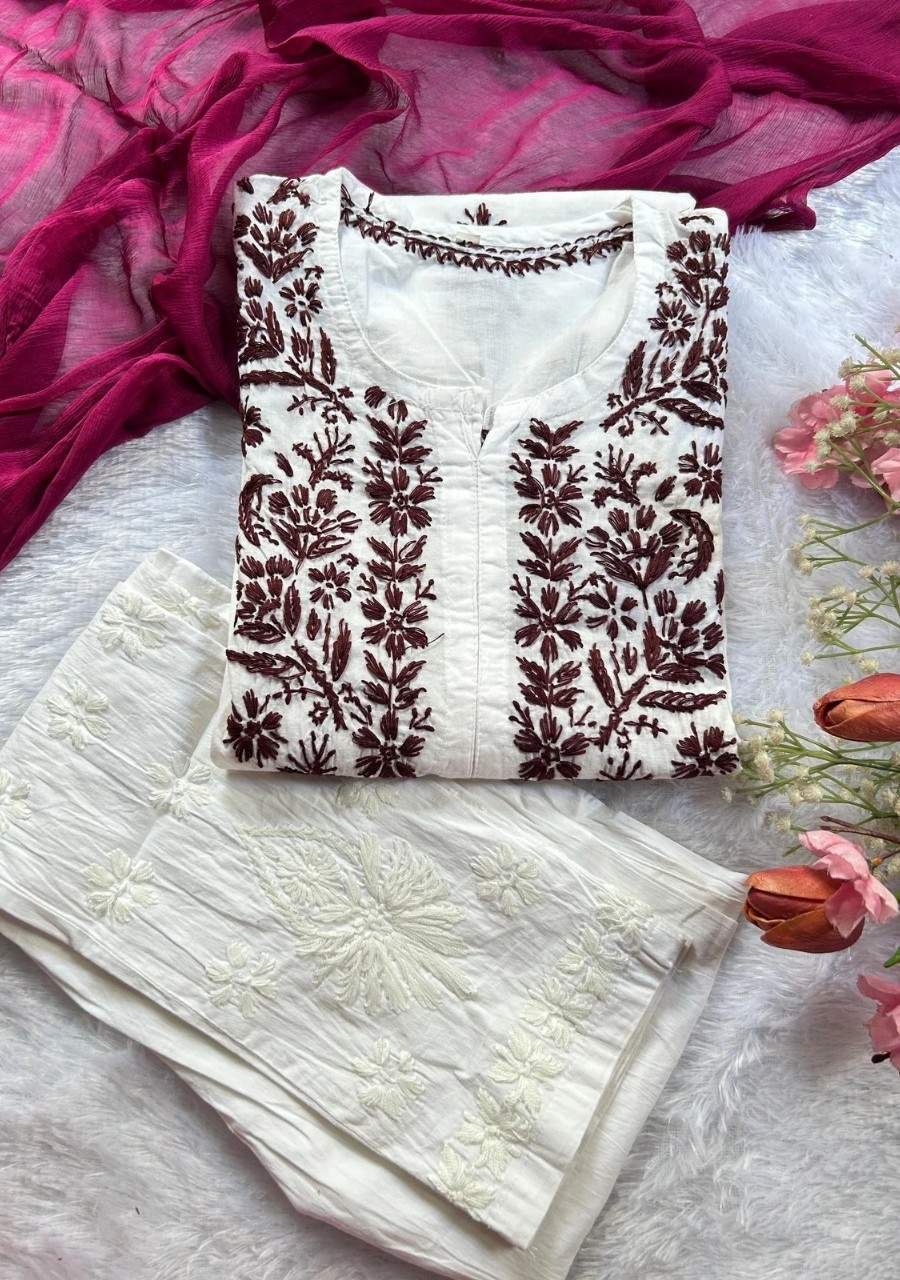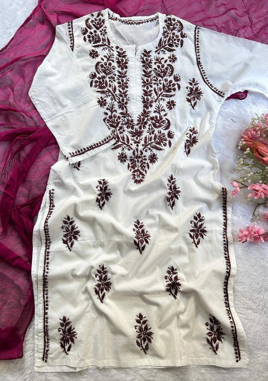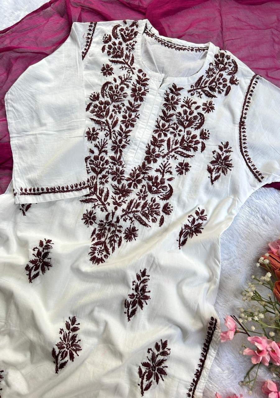 Summer’s favorite white cotton kurti with colorful chikankari handwork—lightweight, airy, and perfect for any summer outing.
